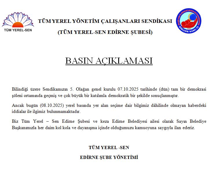 EDİRNE ŞUBE BASIN AÇIKLAMASI