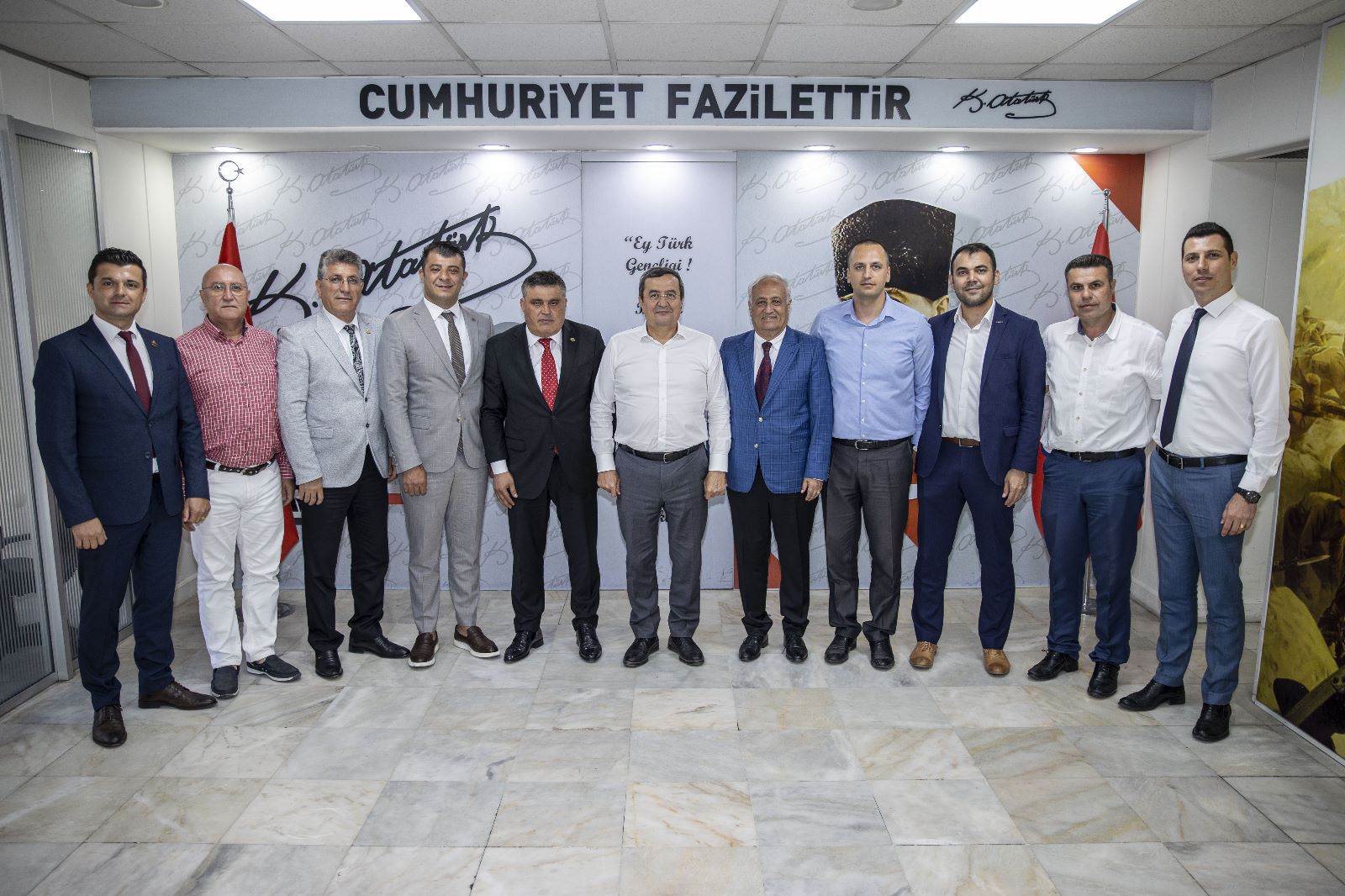 Genel Başkanımız Dede’nin ziyaret programına Genel Mali Sekreter Burak Uzuntaş, Genel Örgütlenme Sekreteri Devrim Onur Erdağ, Genel Basın Yayın Sekreteri Doğan Altun, Genel Sosyal Dış İlişkiler Sekreteri Müsamettin Topuzoğlu, Genel Merkez Denetim Kurulu Üyesi Ergül Gülme İzmir 1 Nolu Şube Başkanı Ahmet Kollar, İzmir 2 Nolu Şube Başkan Ömer Eşki ve İzmir 3 Nolu Şube Başkanı Yücel Yılbaşı eşlik etti.