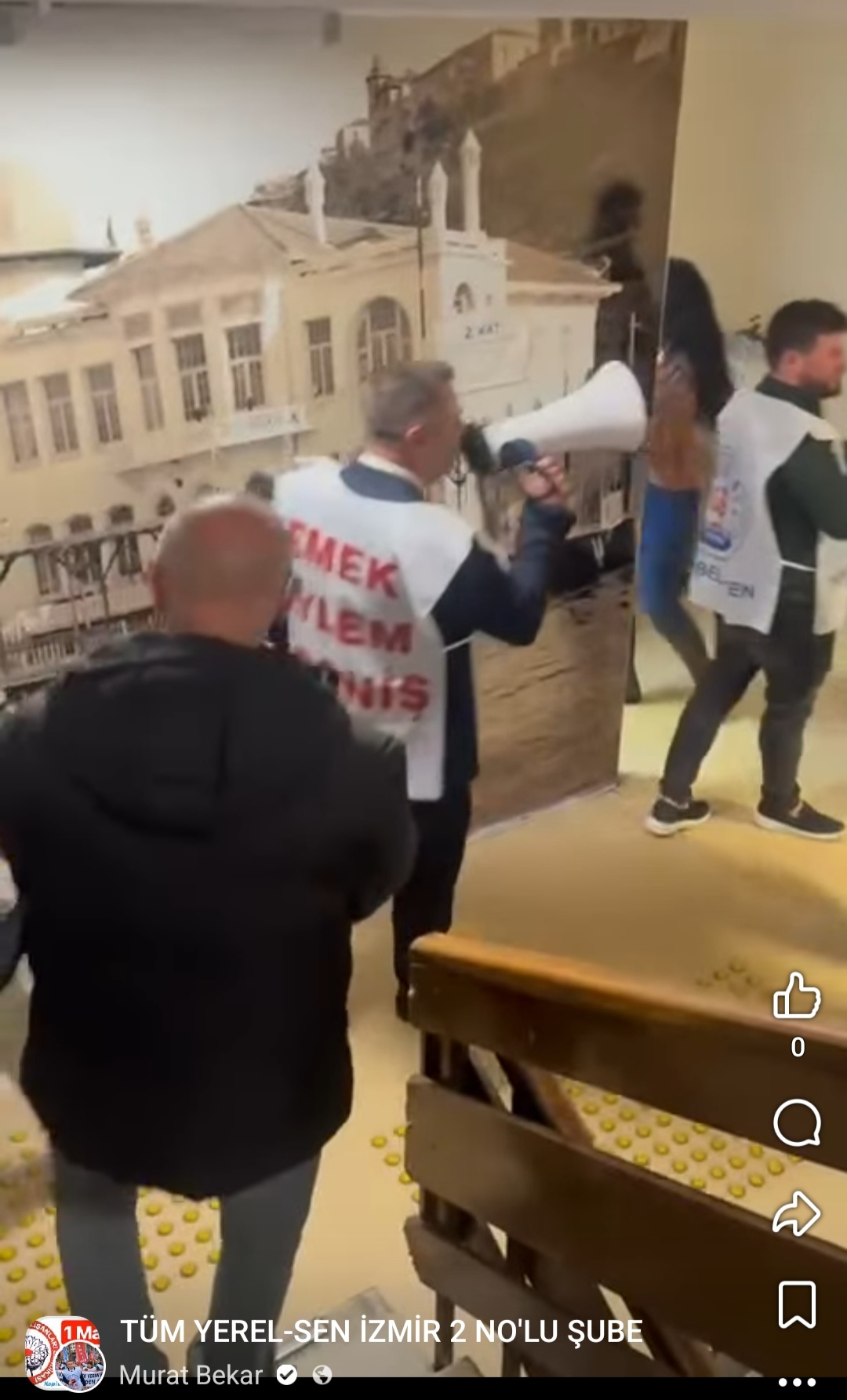 Konak Belediyesi emekçilerinin seslerini duyurabilmesi taleplerini idareye ulaştırabilmesi kamuoyunda farkındalık adına her gün 12:00 ve 17.30 saatleri arasında yarım günlük iş bırakma ve basın açıklama eylemlerimiz.