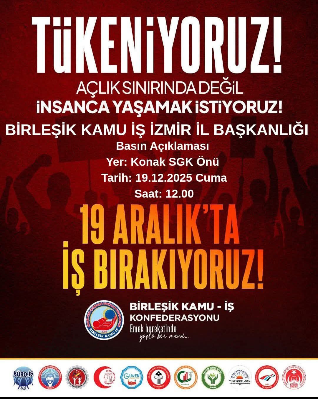 KONFEDERASYONUMUZUN TÜM BİLEŞENLERİ İLE BİRLİKTE TAM GÜN İŞ BIRAKIYORUZ.