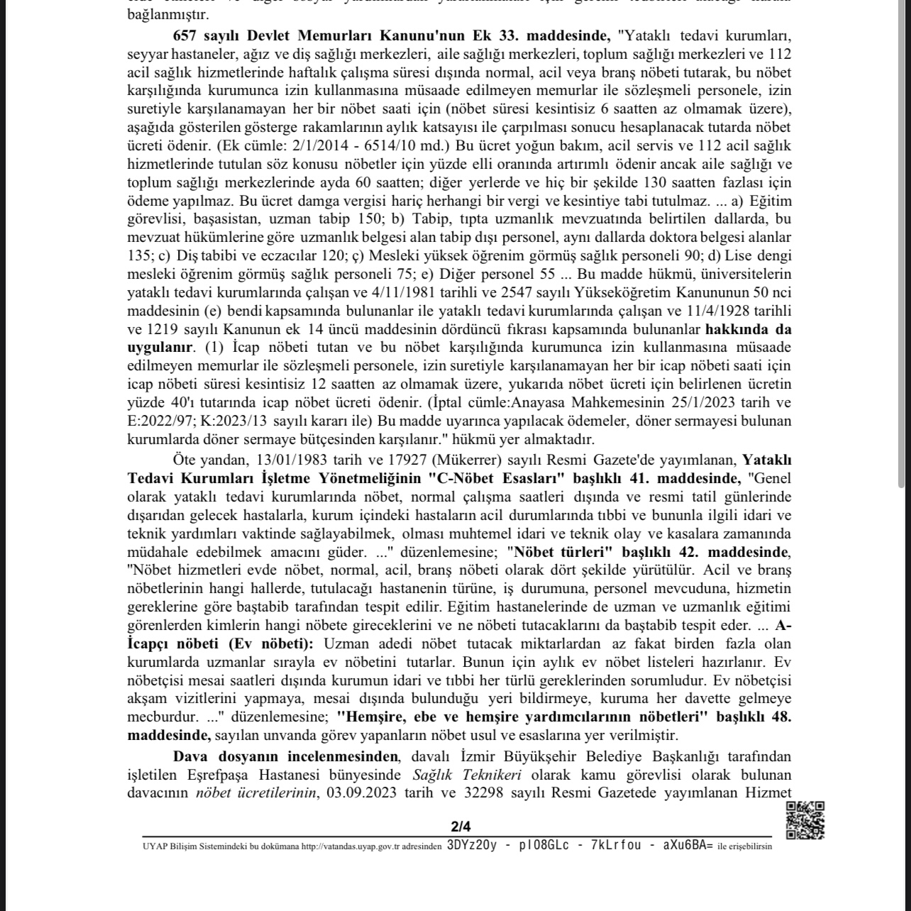 Eşrefpaşa Hastanesi ve 112 AKS Personelinin Artırımlı Nöbet Ücreti Hakkındaki Davasında Önemli Gelişme