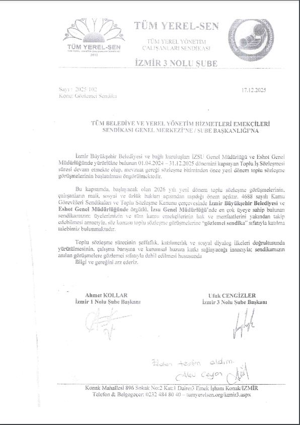 Şeffaflık söylemini dilinden düşürmeyenlerin; sendikamızın yürütülen görüşmelere gözlemci olarak katılma talebini ve 17.12.2025 tarihli, 2025/102 sayılı resmi yazımızı neden ısrarla görmezden geldiğini derhal ve açık bir şekilde kamuoyuna açıklaması gerekmektedir.