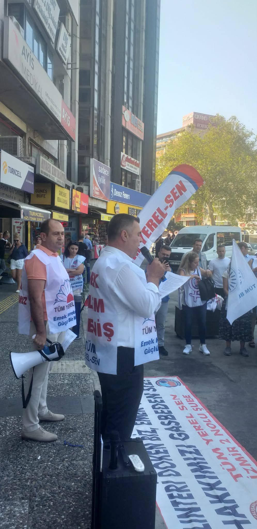 Tüm Yerel Sen İzmir 2 nolu şube ve örgütlü olan sendikalar ile Konak Belediyesi memur emekçileri meydanlarda bir araya gelerek ödeme yapılmayan Sosyal denge tazminatı, arazi tazminatı, ikramiye, icra ve nafaka kesintilerinin geriye dönük alacaklarımız ile ilgili seslerimizi duyurabilmesi taleplerimizi idareye ulaştırabilmesi kamuoyunda farkındalık olusturabilmesi adına 24.Eylül.2025 Çarşamba günü yapılan iş bırakma ve basın açıklama eylemimiz.