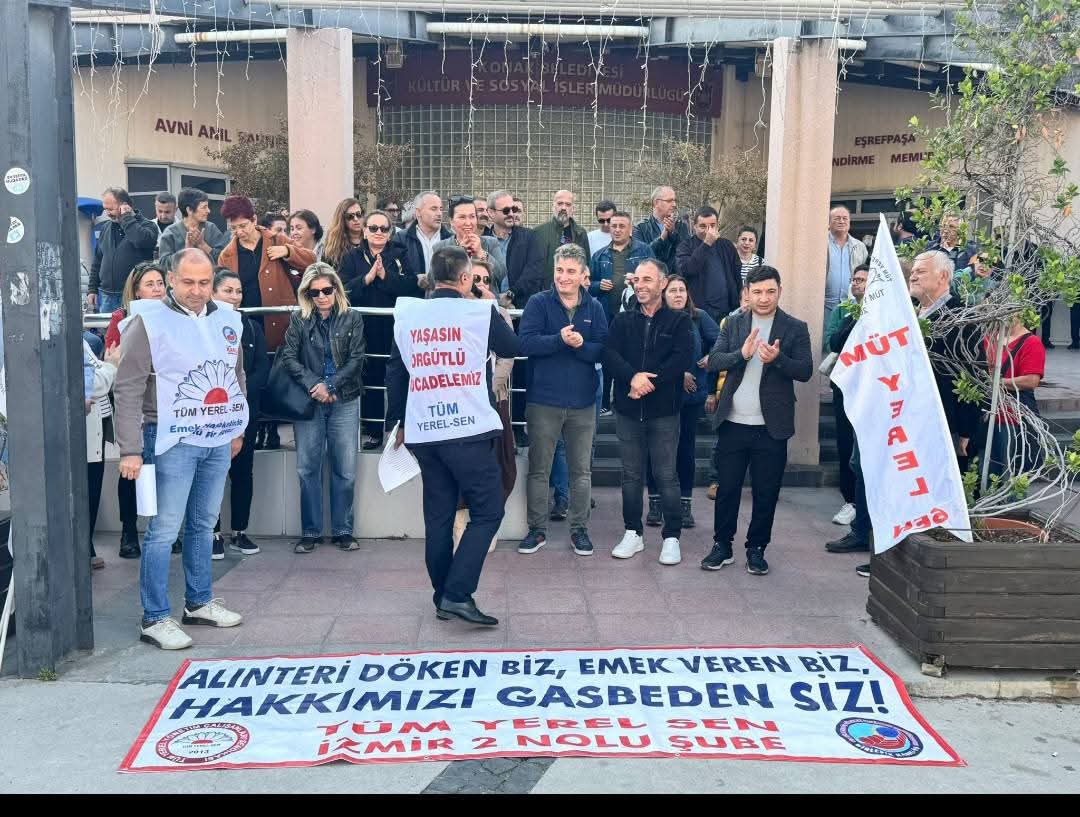Tüm Yerel Sen İzmir 2 nolu şube Konak Belediyesi memur emekçileri Konak Belediyesi meclis salonu önünde bir araya gelerek ödeme yapılmayan Sosyal denge tazminatı, Avukatlarımızın vekalet ücretleri geriye dönük alacaklarımız Kamu emekcilerimize verilen sözler tutulmadığından dolayı seslerimizi duyurabilmesi ve kamu oyunda farkındalık oluşturabilmesi adına 14.Ekim.2025 Salı günü Konak Belediyesi meclis salonu önünde yapılan basın açıklama eylemimiz...