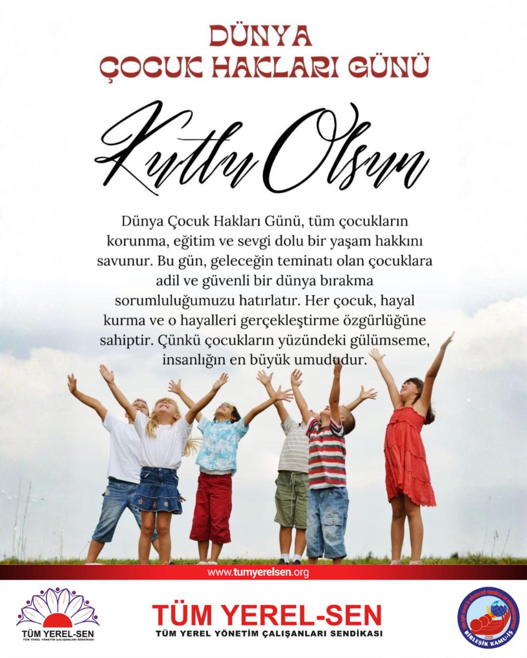 Her çocuğun eğitim, sağlık, beslenme ve barınma imkânlarından eşit olarak faydalandığı, hep birlikte yeniden inşa edeceğimiz sevgi ve umut dolu bir gelecek hedefiyle, yarınların umudu olan tüm çocuklarımızın 20 Kasım Dünya Çocuk Hakları Günü kutlu olsun.