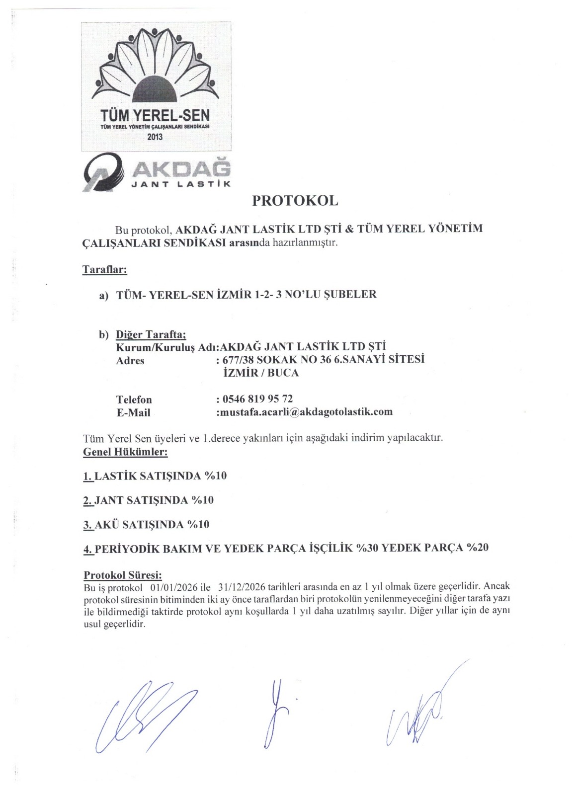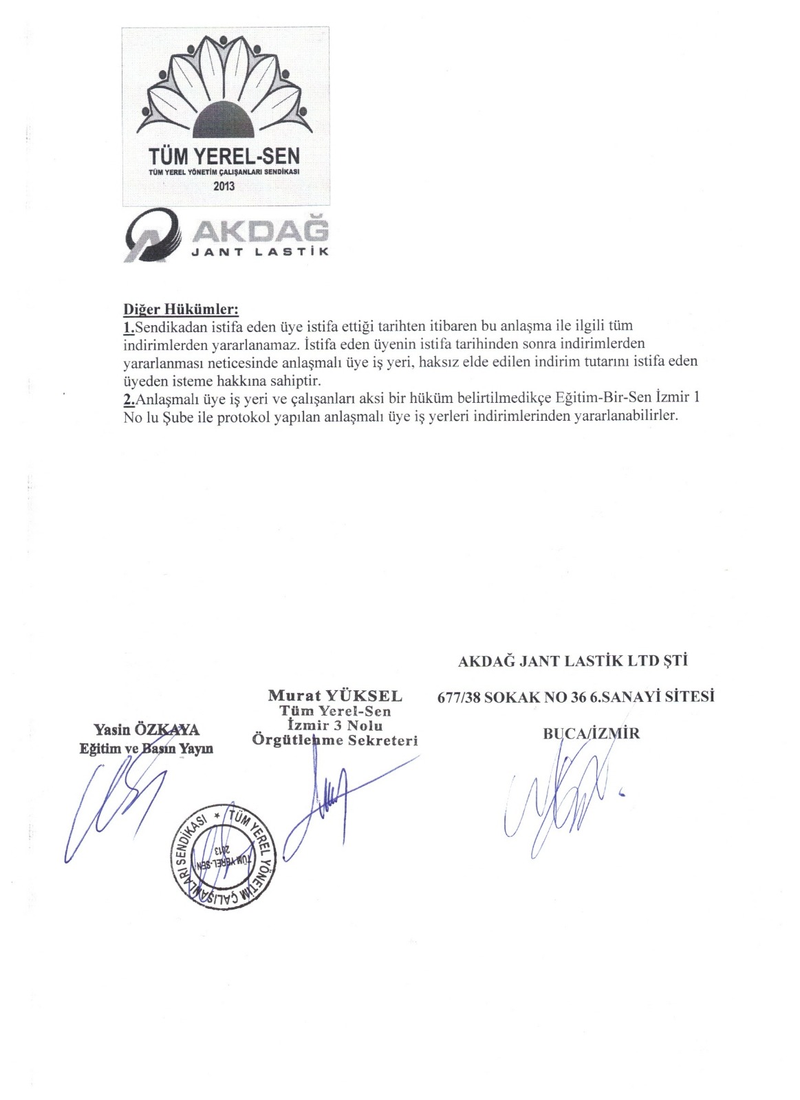 Yerel Sen İzmir 3 No’lu Şube olarak, Akdağ Jant Lastik LTD. ŞTİ. ile özel bir işbirliği protokolü imzaladık.