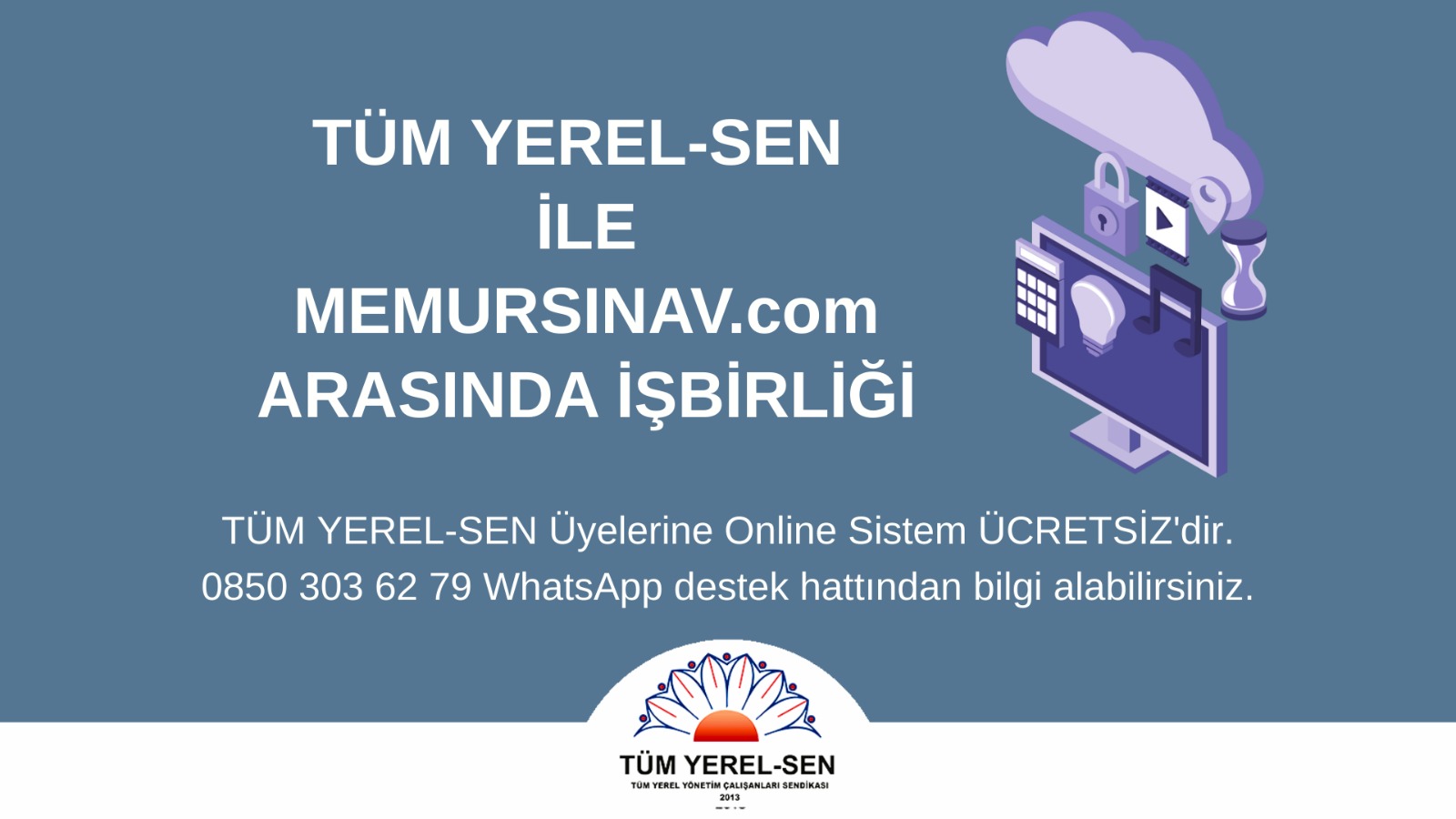 Tüm Yerel Sen olarak, Görevde Yükselme Sınavı kapsamında üyelerimizin sınav sürecine daha etkin hazırlanabilmelerini sağlamak amacıyla memursinav.com ile iş birliği anlaşması yapılmıştır.