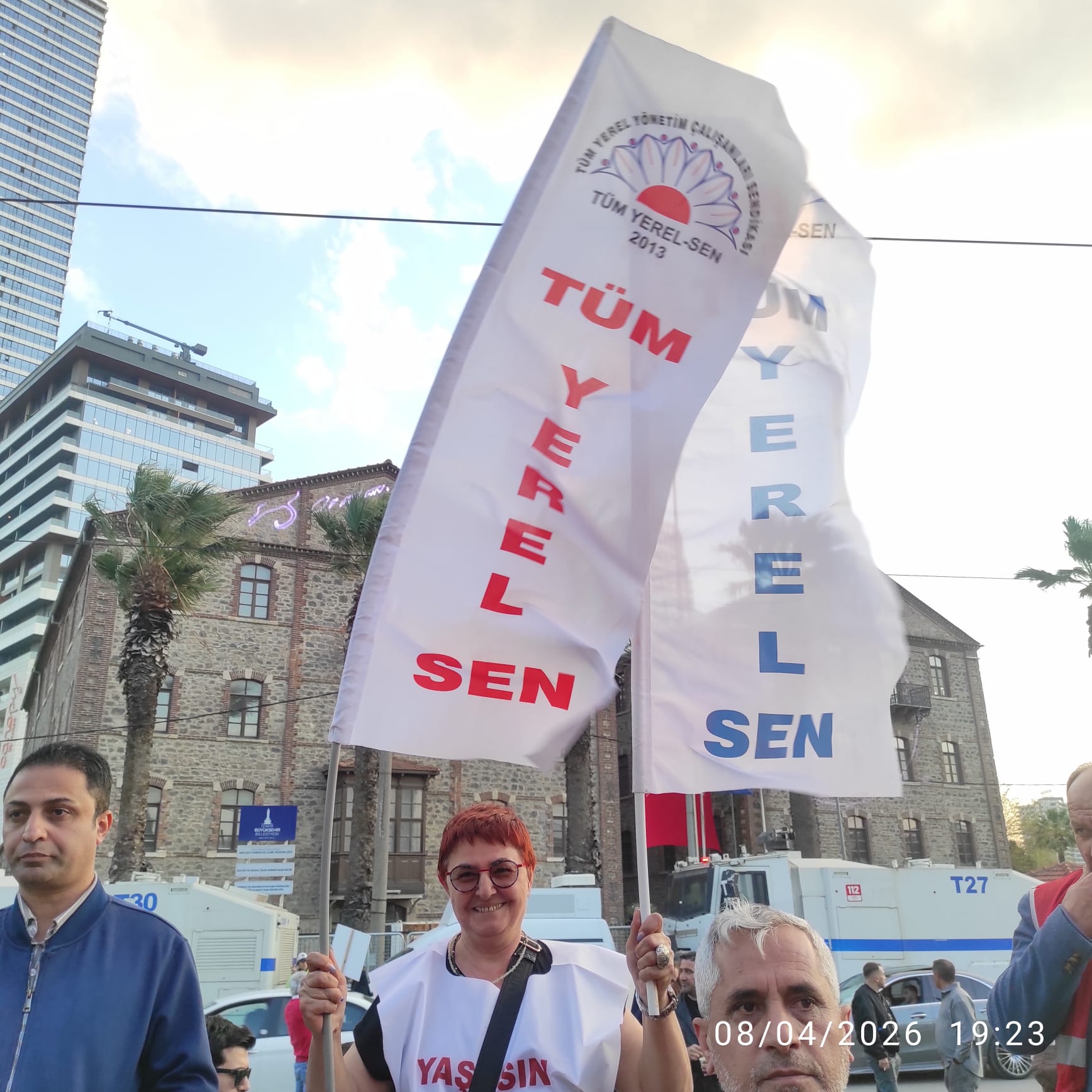 Hukukun üstünlüğünün yok sayıldığı, sabahın ilk ışıklarıyla kapılara kilit vurulmaya çalışıldığı bir ortamda; susmanın kötülüğü normalleştirmek olduğunun bilincindeyiz. Emekçinin ve halkın yanındaki duruşumuzla, İzmir Büyükşehir Belediyemizin yürüttüğü bu haklı mücadelede en ön saflarda yer almaya devam edeceğiz.