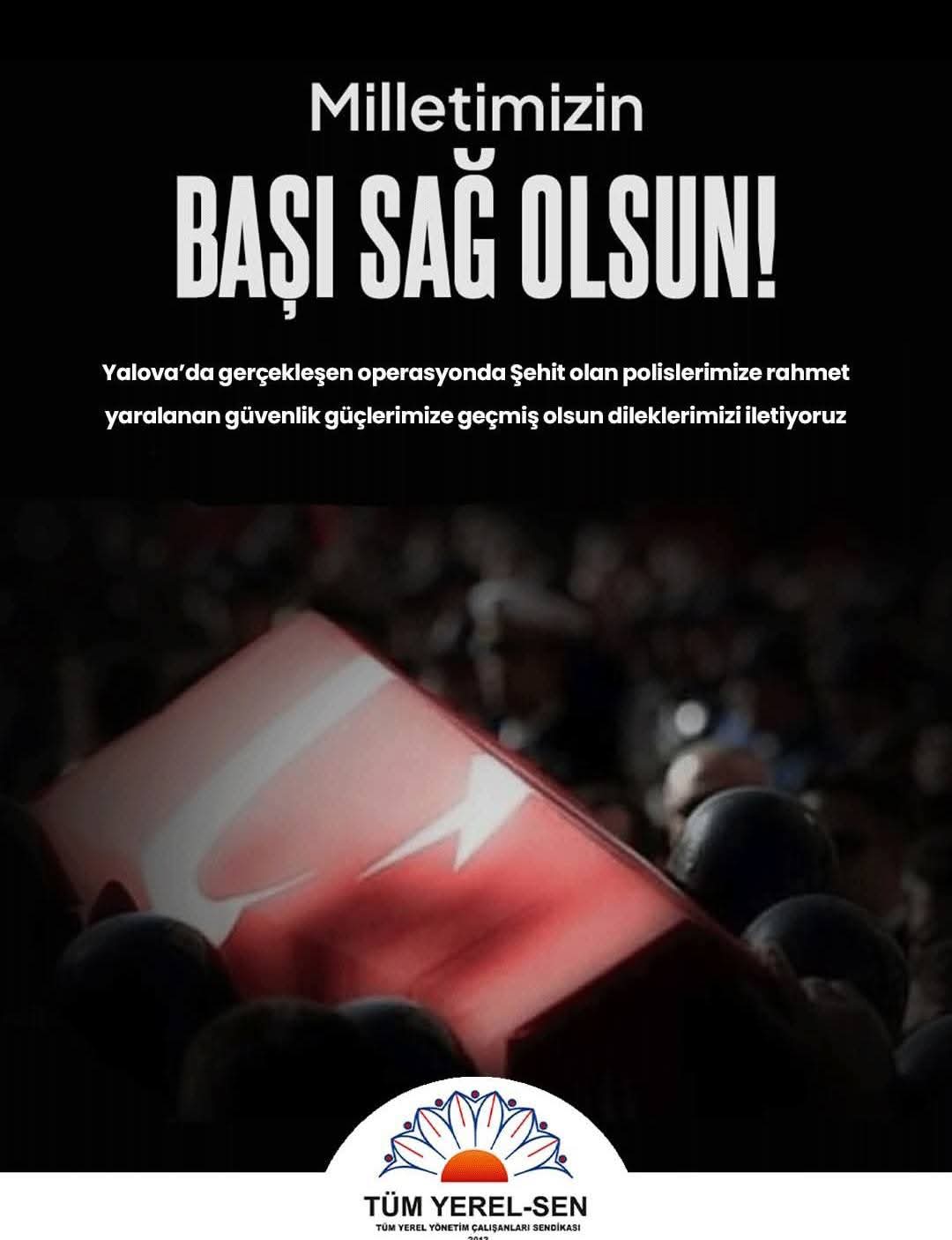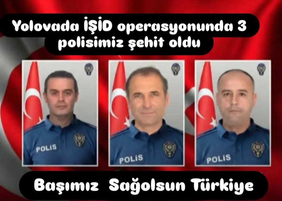 Yalova’da DEAŞ terör örgütüne yönelik yürütülen operasyon sırasında çıkan çatışmada şehit olan kahraman polislerimize Allah’tan rahmet; ailelerine, yakınlarına ve Emniyet Teşkilatımıza sabır ve başsağlığı, yaralı polislerimize acil şifalar diliyoruz.