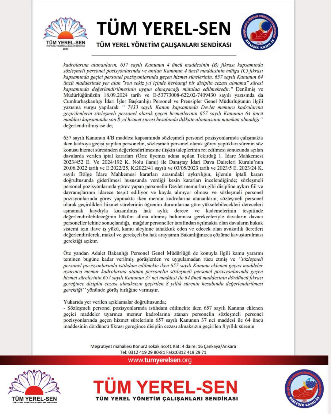 Sözleşmeliden kadroya geçen personelin sözleşmelide geçirdikleri sürelerin de “bir kademe ilerlemesi uygulanması için gerekli olan disiplin cezası almaksızın geçirilen 8 yıllık sürenin" hesabında dikkate alınması gerektiği Mahkeme kararıyla da tescillendi.